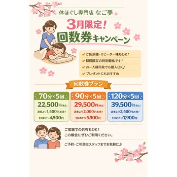 いつも体ほぐし専門店なご夢をご利用いただき、誠にありがとうございます。